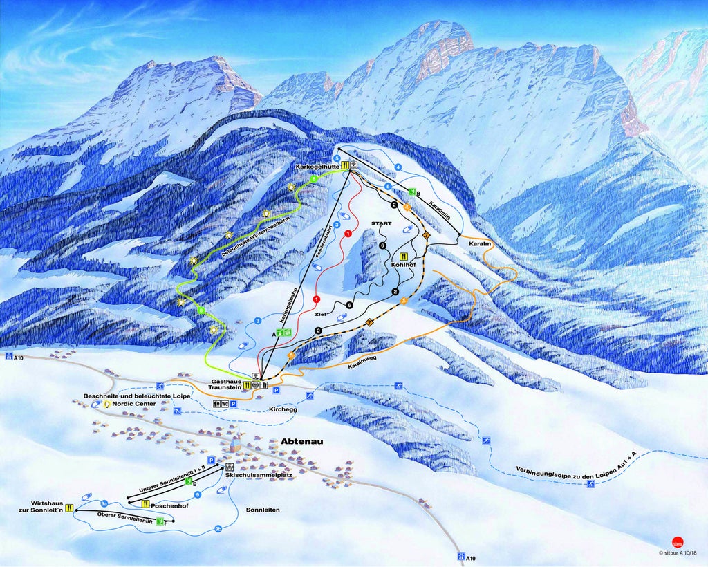 Abtenau's small local ski area on the low lying Karkogel is supplemented by the Dachstein West Ski Area, ten minutes away. The Karkogel does have two blacks and there's some off piste and a ski jump to enjoy!...more