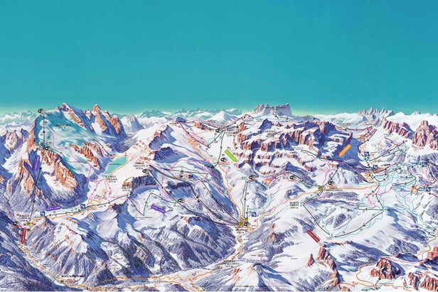 The Arabba Ski Resort, with its 60 km of snowy slopes and 31 modern ski lifts, is one of the most well-known resorts of the Dolomiti Superski ski area. It comprises the Sella Ronda ski route which connects 4 Dolomite passes: Campolongo, Gardena, Sella and Pordoi.