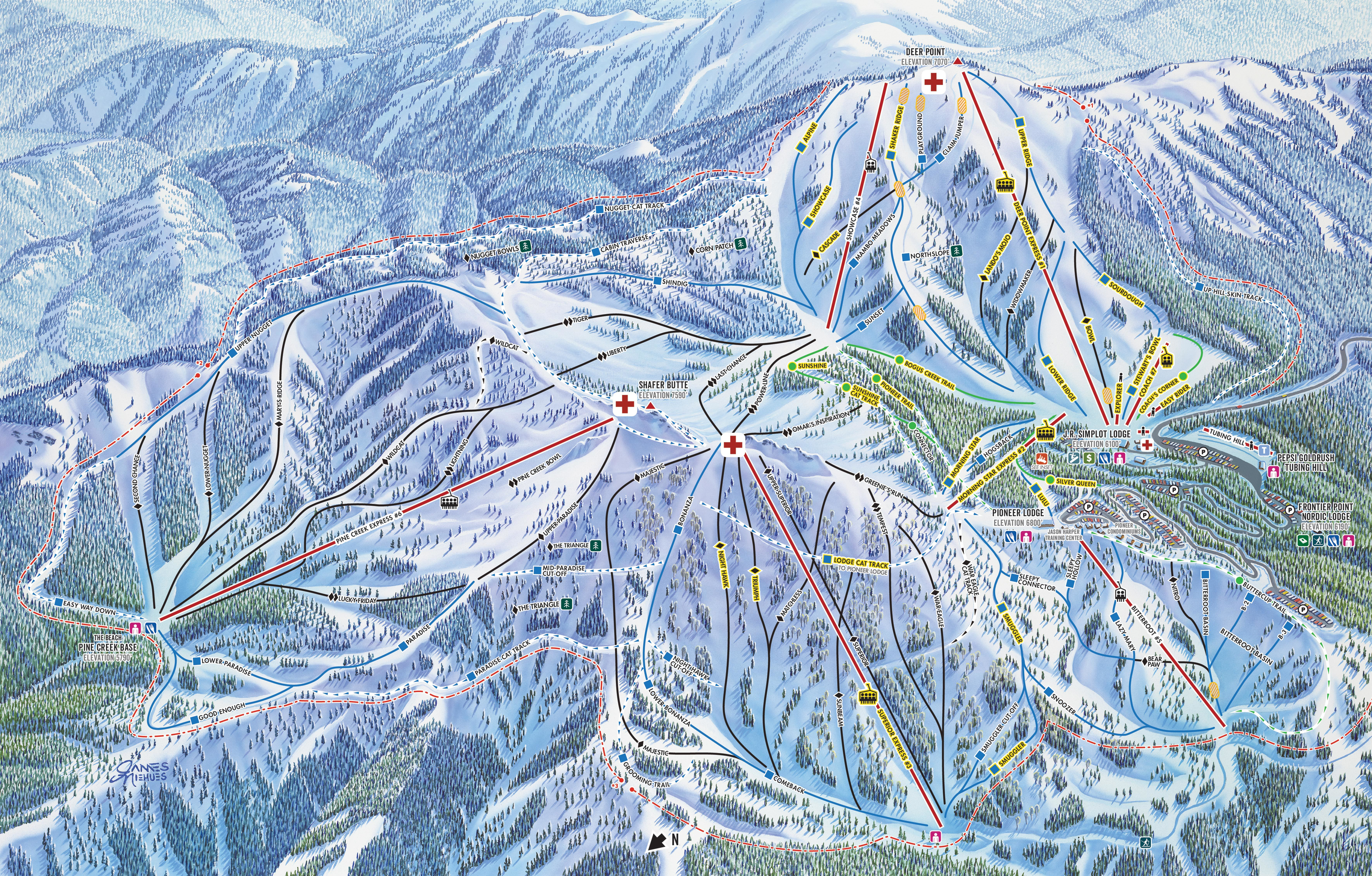 Bogus Basin is located in southwest Idaho, approximately 16.5 miles north of Boise, and offers 2,600 acres of skiable terrain across more than 90 runs.