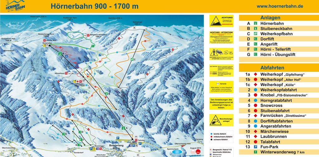 The ski area Hörnerbahn-Bolsterlang is known as a very family-friendly resort. The slopes in the ski area are suitable for all levels of difficulty. There are several deep snow slopes, a mogul slope contrasting smooth hillsides and a training ground for children available.