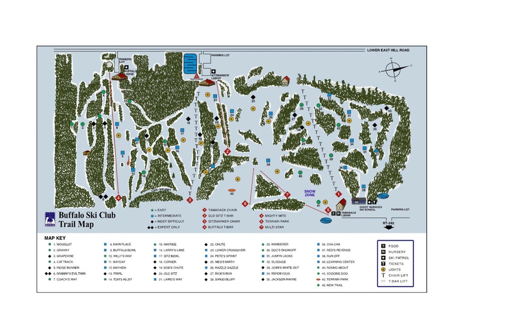 Just outside of West Falls, New York, Buffalo Ski Area brings together three clubs: Buffalo, Sitzmarker, and Tamarack Ski Club. With each club representing comfortable lodges at each of the bases, they share 300-acres of skier and rider accessible terrain. Two lifts, two T-bars, and two handle lifts transport skiers and riders across 43 trails and a vertical of 500-feet....more