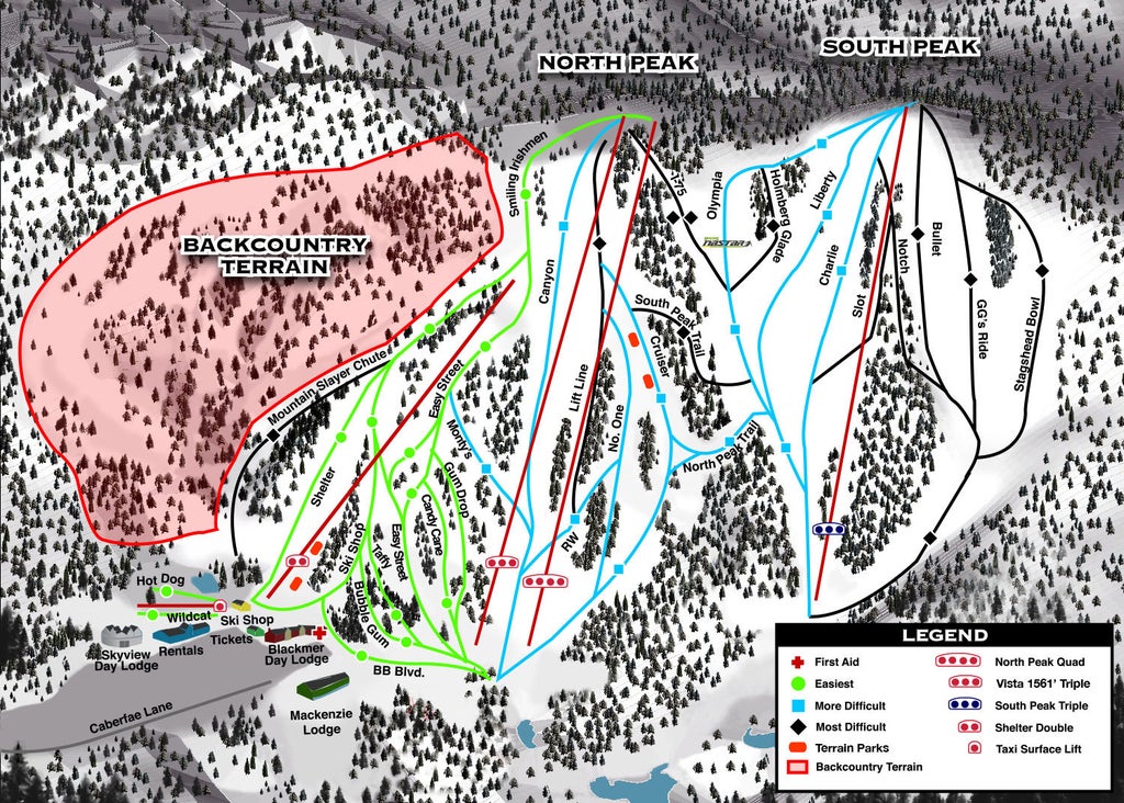 Caberfae Peaks is home to the highest lift-served peaks and some of the best ski terrain in Michigan. The Peaks has something for everyone, with a dedicated novice area and ski school for beginners, as well as the vertical drop and challenging terrain to satisfy experienced skiers and boarders. The Blackmer Lodge provides a great place for day skiers to relax by the two-story stone fireplace, get a bite to eat, or visit R'Dub's rustic pub....more