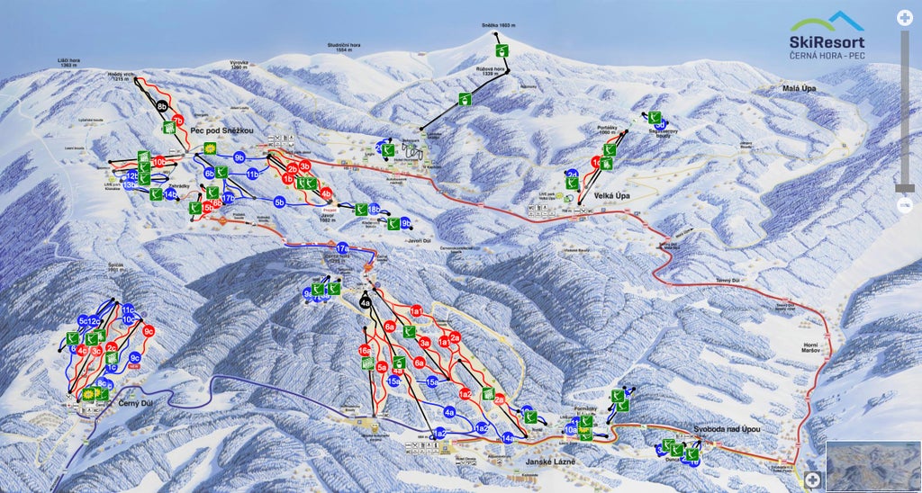 An important spa town established in 1697 by a local Count. The first ever cable car was erected here in 1928, replaced by a modern gondola in 1980 giving access to a 2.5km (1.5 mile) run, the country's longest. The Protez piste served by the resort's quad chair is one of the longest slopes with artificial lighting in the Czech Republic. Its length of 1.6km (a mile) is graded "red - blue."...more