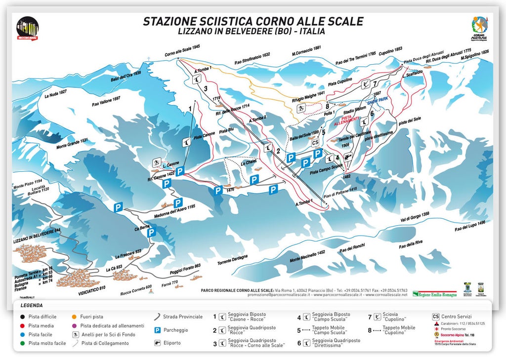 For those keen on winter sports, the "Corno alle Scale" offers 36 kms of beaten tracks able to satisfy all needs, with snow assured by a system of ad advanced technology on programmed snow. The characteristics of descending tracks made the resort able to give hospitals to many international agonistic manifestations and also made the great champion Alberto Tomba able to reach the athletic preparation that allowed him to conquer world-wide golds.