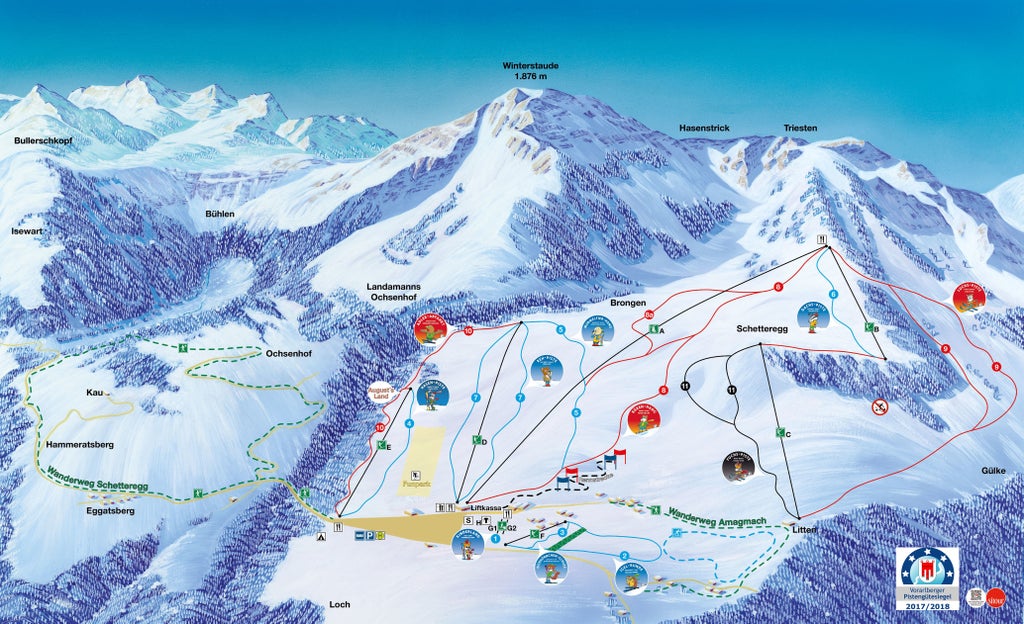 Schetteregg is a well-known, snow-secure and family-friendly ski resort, belonging to the village of Egg in the Bregenzerwald. Powerful lifts, prepared trails for amateurs and pros, reduced rates for groups and pupils. Four restaurants, one with self-service, and a tea room at the top of the lifts take care of your physical well-being. Moreover: snowmaking systems, a restaurant with group accommodation!...more