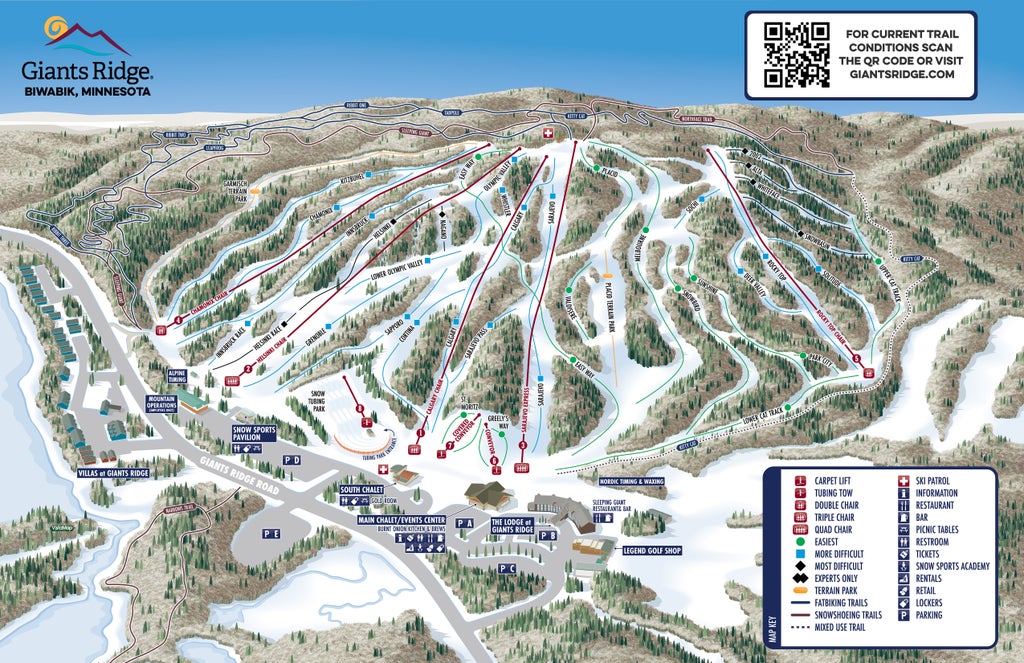 Giant's Ridge Resort, located in Minnesota's Iron Range northwest of Duluth, is one of the Gopher State's biggest golf and ski resorts. Residents are proud of its reputation as "America's Icebox." The ski resort boasts a 1,792 foot summit elevation, as well as a 7,000 person uphill capacity. The 35 trails that soar off the rocky crest offer some of the best cruising runs around the Great Lakes. Giants Ridge has an intermediate and beginner terrain park as well as a Children's sledding area and s...more