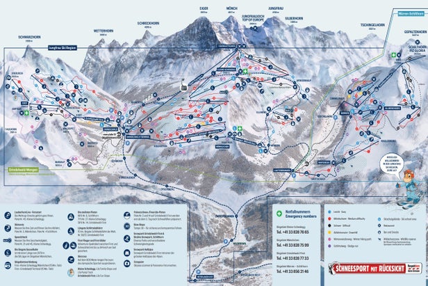 Modern ski lifts carry skiers and snowboarders to the different slopes that are situated between an altitude of 943 and 2320 metres. Beside the slopes for alpine skiing the winter holiday in Wengen also offers toboggan runs and almost 100 kilometres of winter hiking trails. When you go skiing in Wengen you might also like to take the mountain railway up to...more