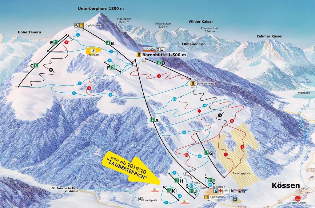 In one of the snowiest regions in Tyrol, in Kaiserwinkl, is the skiing area Hochkössen at Kössen at 600-1700 metres above sea-level. For the highness of Kössens at 600 metres above sea-level, the most snow of the Alps is falling here.