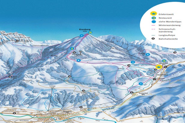 Small ski area served by the bright yellow Kronberg cable car (tram). This is a popular year round attraction and serves the medium sized ski area at the top of the lift. When snow condiyions are good there's an excellent eight kilometre (five mile) red graded descent, the Talabfahrt, which passes the Scheidegg restaurant at 1352m en rourte down. There's a small beginners lift at the bottom of the cable car and a longer progression lift serving both intermediate and advanced terrain. Two sur...more