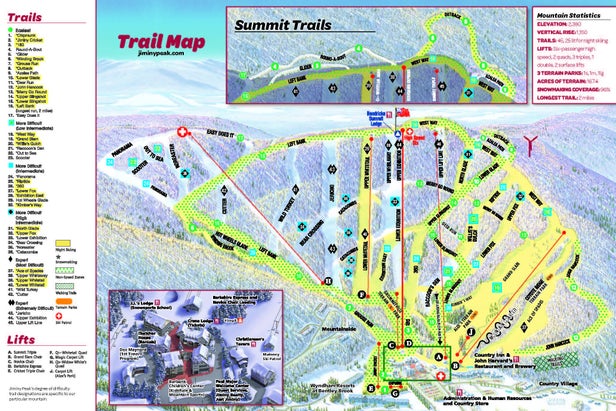 Jiminy Peak is a self-contained ski resort, with skiing and boarding, slope-side accommodations, a village center with shops and dining on site. Jiminy is the only mountain resort in North America that generates its own energy by using alternative wind power, thanks to their wind turbine.