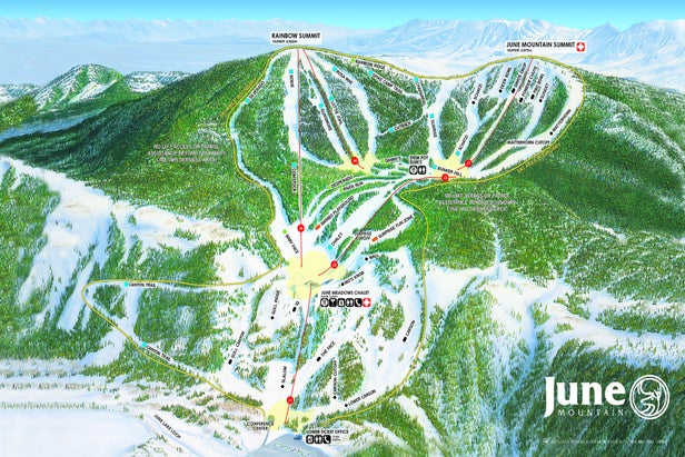 Southeast of Yosemite National Park near June Lake, and down the road from Mammoth Mountain, June Mountain offers 1,500 accessible acres to skiers and riders. Seven lifts service a 2,590ft vertical rise and provide access to 35 named trails. 80% of June Mountain’s terrain is beginner or intermediate so there are three terrain parks to entertain freestylers, while backcountry tours can be taken to places such as Gnome Zone, Upper Glass Creek, San Joaquin Ridge, the Negatives, Fern Creek, Carson P...more