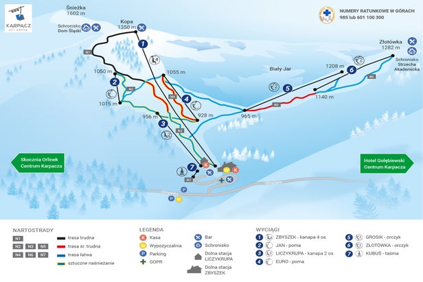 The ski resort "Kopa" in the Karpacz is located at an altitude of 820 to 1,340 meters above sea level. Skiers can take advantage of 7 lifts, two chairlifts and five t-bars. Trails are artificially snowed. Skiers' safety is assured by lifeguards Mountain Rescue....more