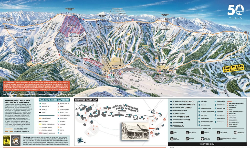 Kirkwood Mountain Resort is a year-round mountain destination located along the Sierra Crest in the Eldorado National Forest south of Lake Tahoe in California. The terrain at Kirkwood offers skiers and riders everything from long groomed trails to expert lines and chutes. The resort receives abundant snowfall each season coupled with spectacular views of the surrounding mountains.