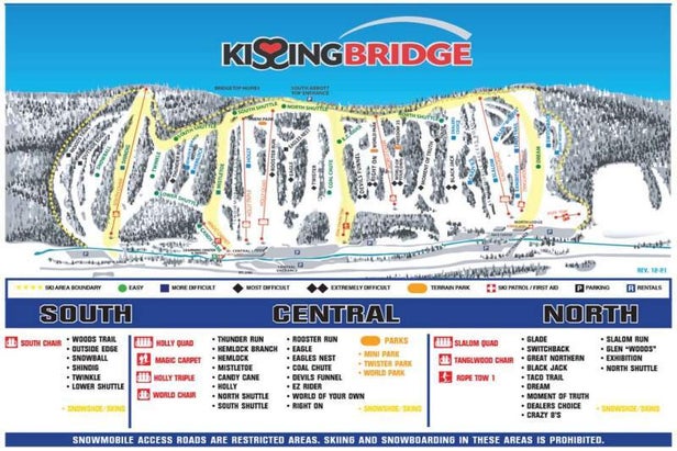 Kissing Bridge, located in Western New York, has an average annual snowfall of about 180 inches. Along with 90 percent snowmaking capability, excellent ski conditions are ensured. Kissing Bridge has a vertical drop of 600 feet and offers night skiing....more