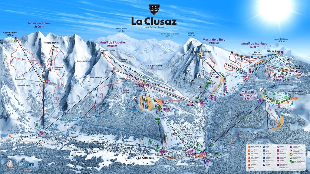 The small, scenic village of La Clusaz (1100m) offers access to a surprisingly large ski area straddling five mountains. Its 132km of primarily intermediate slopes are set both above and below the treeline (1000-2600m), making it both interesting and varied.