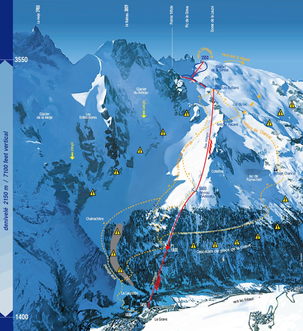 The Meije Glacier cable car opens the doors to a ski area which is not actually a ski area. This magical skiing landmark is one of the world's last true holy grails in which skiers can be free and truly live by their passion. In La Grave there are endless routes down the series of small valleys, for the most daring, those of the Meije, and for those searching a little safety those of Chancel.