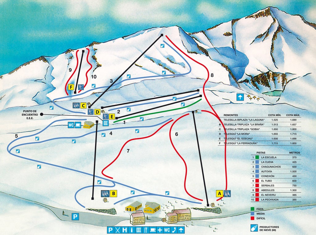 Beginners resort with limited facilities at the slope, most accommodation is to be found within a 35 KM radius of the site and the majority of apres ski in nearby León....more