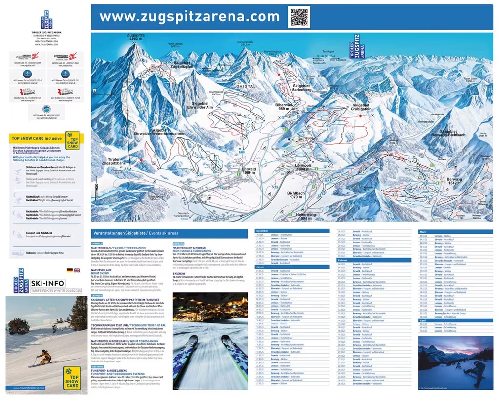 Well known snowboard-freeride area with snowboarders-only slope located in the higher region of our "Grubigstein" in Lermoos; 2 practice lifts with low rope and a conveyer belt for beginners (ski school); ideally suited for families with kids. 28 km of partially quite demanding slopes and a wonderful view on the beautiful Zugspitze, our German neighbours' highest mountain.