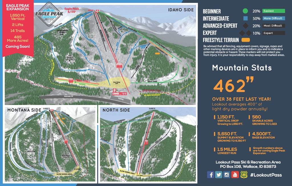 Lookout Pass, located on the Idaho/Montana border off Exit 0 on I-90, is home of some of the best snow, easiest access and most-affordable prices in the region. It's no wonder Lookout Pass was voted the most family-friendly mountain resort in the Pacific Northwest by OnTheSnow visitors. They are also home to the Lookout Pass Famous Free Ski School for kids. You'll find four lifts serving 34 named runs and acres of great tree skiing. But what skiers and riders love most about Lookout is an averag...more
