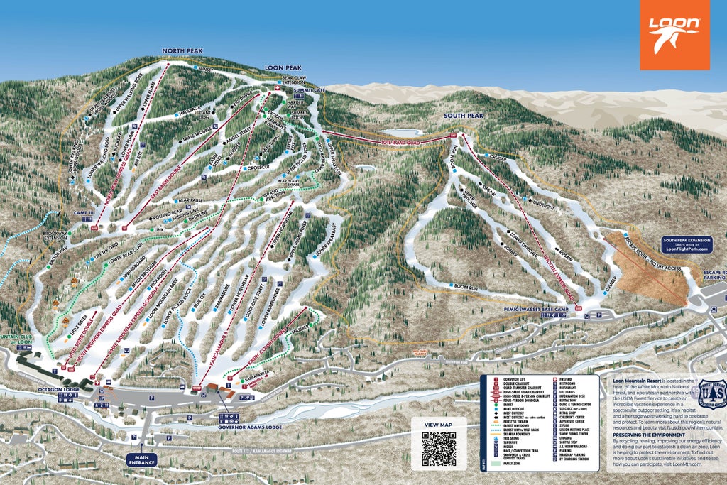 Loon Mountain ski resort is located in Lincoln, New Hampshire, within the scenic White Mountain National Forest. The ski area is within a two-hour drive of Boston and Manchester and a four-hour drive from Providence.