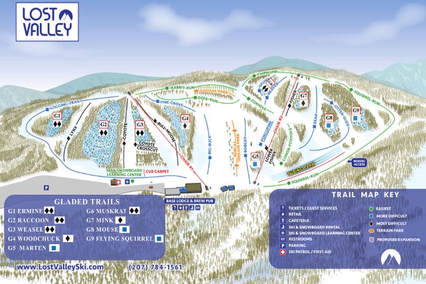 Lost Valley was the first ski area in Maine to make artificial snow, and now boasts a snowmaking track record of some 40 years. It also boasts one of the largest ski schools in New England. It is a family ski area where you can get in 14 hours of continuous skiing every weekend of the season, giving it the distinction of having the longest ski day in Maine....more