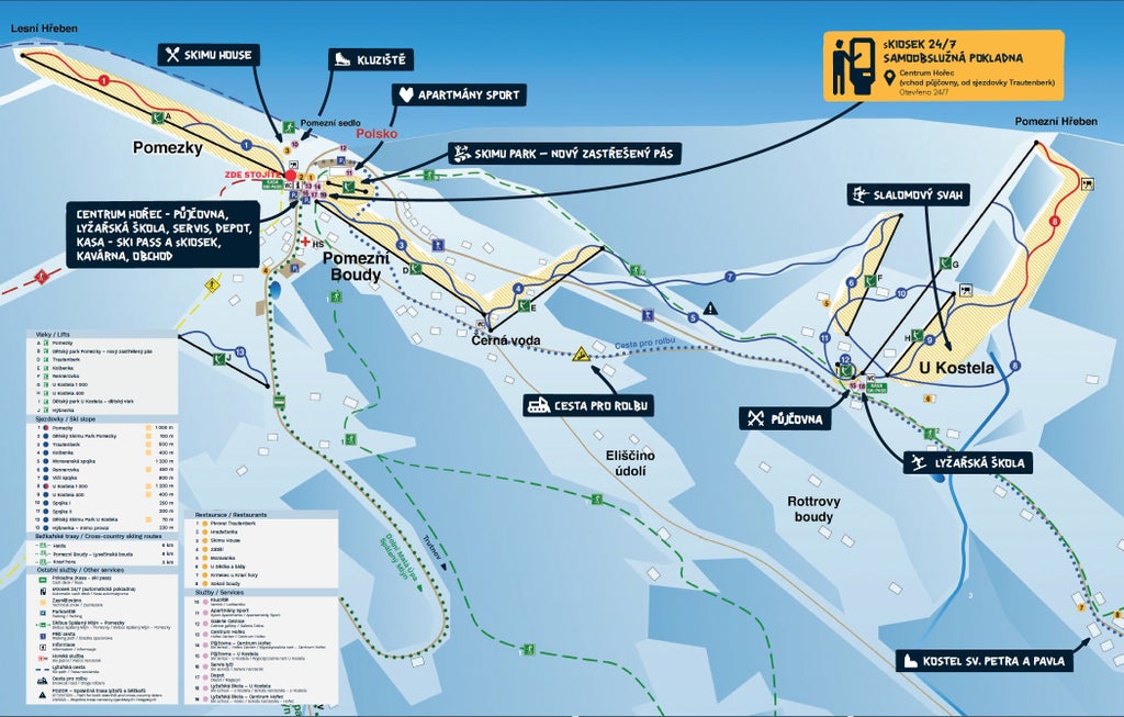 Grew up to supply timber to the silver mining town of Kutná Hora, 100KM south. Lumberjacks from the Tyrol settled the area. Today this unusually high altitude village offers a wide range of skiing opportunities on comparatively snow sure slopes...more