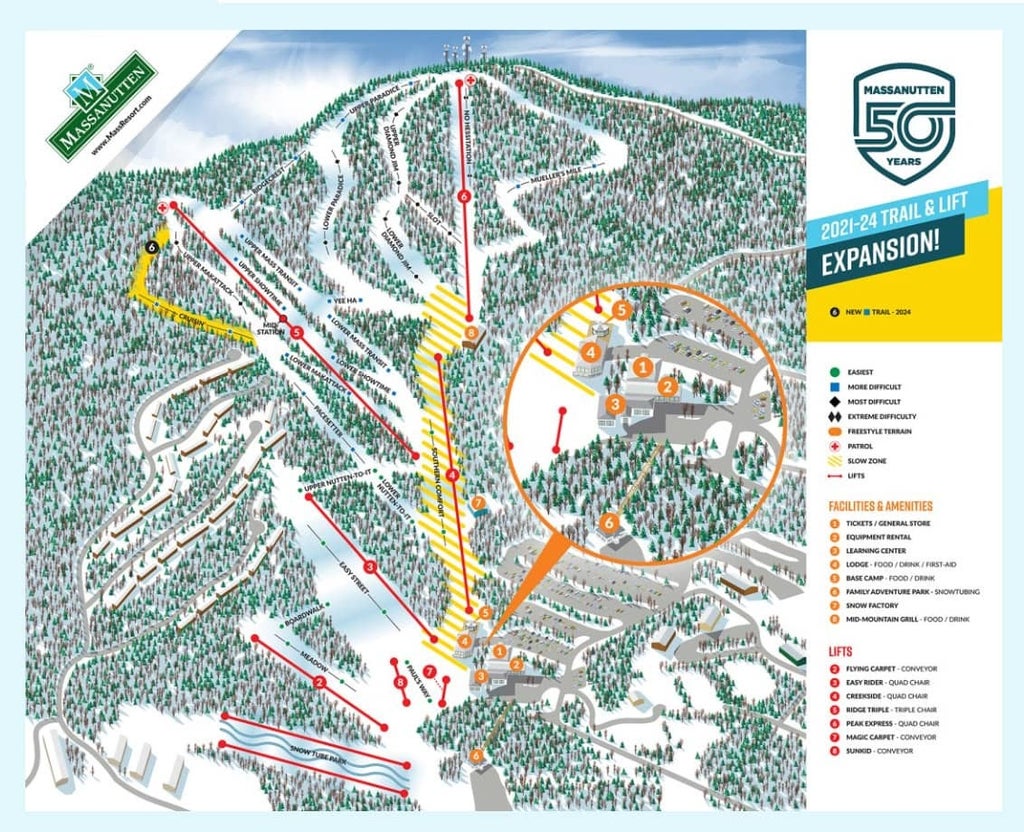 Massanutten ski resort is located in the Shenandoah Valley of Virginia, approximately 15 miles from downtown Harrisonburg. The nearest airport is the Shenandoah Valley Regional Airport, and it is a 30-minute driv...more