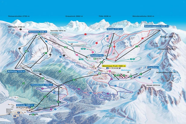Sandwiched between Engelberg and Hasliberg's ski areas, Frutt is a high altitude holiday village by the Melchsee Lake, reached by cable car from Stöckalp in the valley below. Skiing for all standards on pistes up to eight kilometres (five miles) long....more