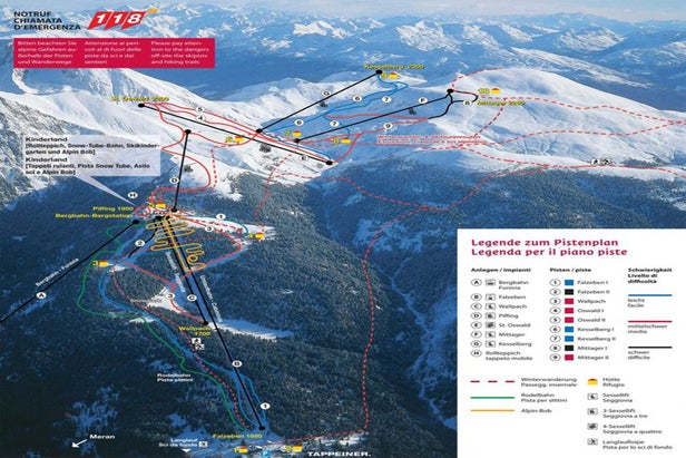 The elegant town of Merano / Meran is linked by two-stage cable car to its own extensive ski area and is also on the 265km Ortler ski pass, which brings in another ten neighbouring centres. There are two climatic health resorts sited above Meran on a plateau 1250-1600m above sea level. Hafling and Voran offer peace and relation....more