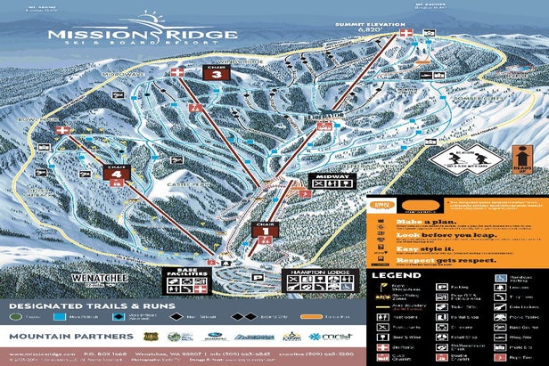 Located only 12 miles from Wenatchee, Washington, Mission Ridge is built into a basin on the eastern side of the Cascade Mountains and known for having 300 days of sunshine annually compared to other mountains in Washington. Mission Ridge features 2,000 accessible acres with a vertical rise of 2,250 feet, and 70 designated trails serviced by seven lifts. Skiers and riders have access to groomers, chutes, bowls, and backcountry for those who prefer the more extreme....more