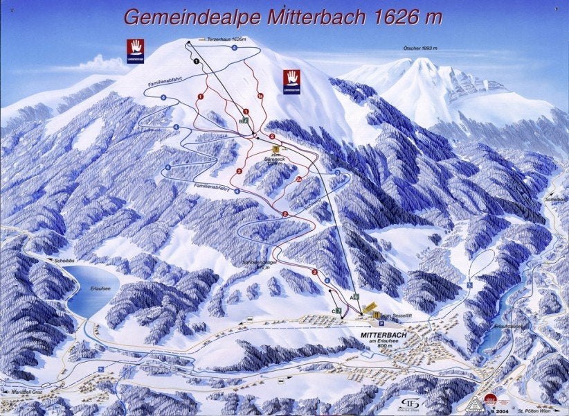 Located only eighty miles from Vienna, Mitterbach's ski area at Gemeindealpe has expanded in recent years adding the long new blue graded family run 4 and a shorter steeper red trail (1A) for the 2006 - 7 season. The resort is a particpant in the multi-area Lower Austria lift pass scheme....more