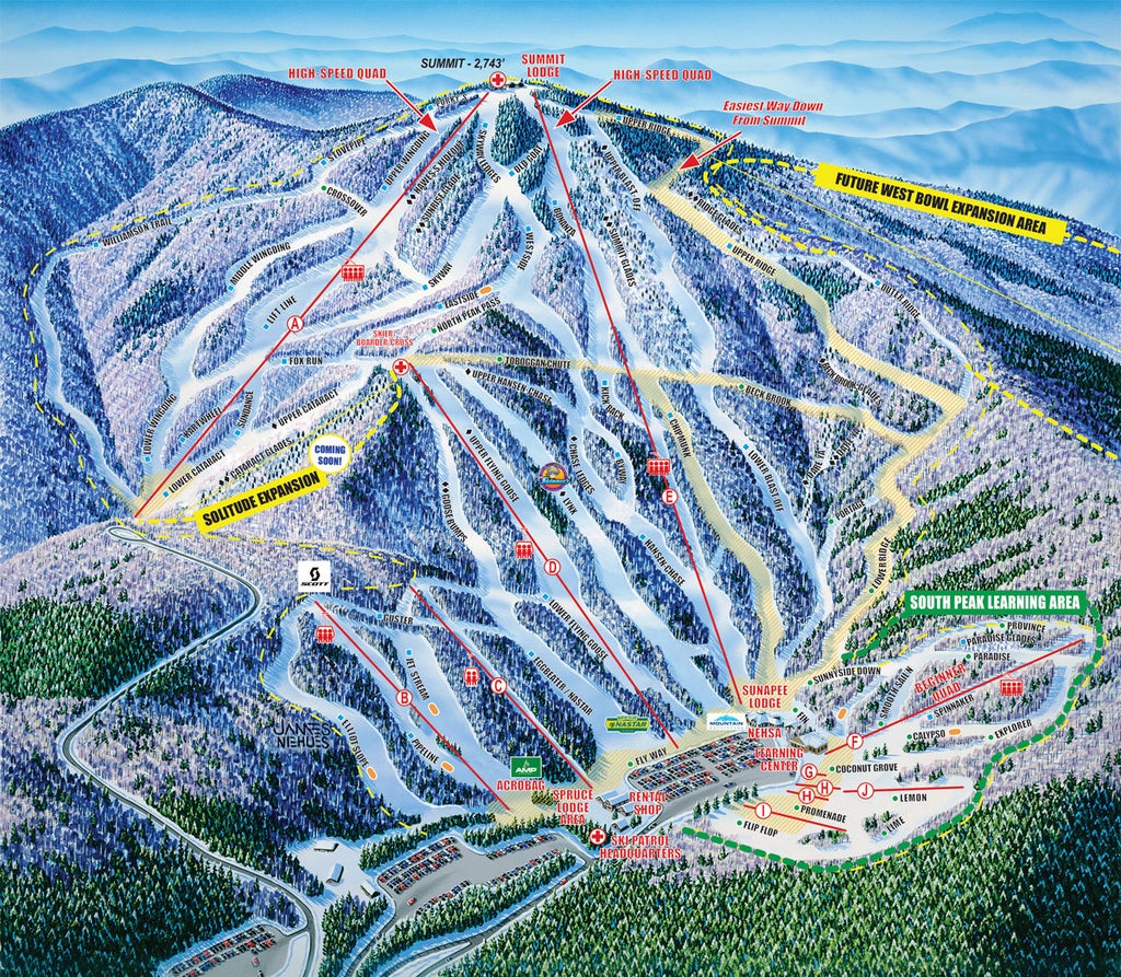 Mt. Sunapee is southern New Hampshire's biggest mountain. The ski resort is located in close proximity to Interstates I-89 and I-91. Sunapee is home to 66 trails spread out over 233 acres of skiable terrain and a 2,743 summit elevation. Sunapee averages 100 inches of average annual snowfall, but benefits from snowmaking on 97% of its terrain. Sunapee has been family operated since 1998 by Tim and Diane Mueller and offer a variety of lodging and dining options in the immediate Mount Sunapee regi...more
