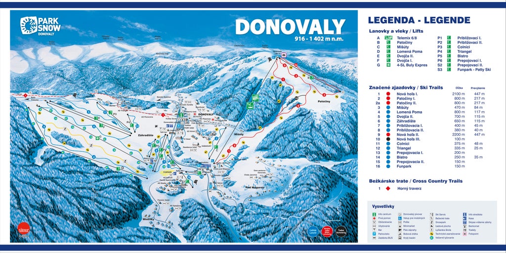 Beautiful mountain panorama, excellent ski conditions, events full of adrenaline, a lot of attractions. Ski resort Park Snow Donovaly is situated between the National Park Low Tatras and Veľká Fatra. It is 25 km away from Banská Bystrica. There are maintained ski slopes suitable for beginners and also for advanced skiers and snowboarders. The terrains are suitable for riding, jumping with many rails and obstacles. Night skiing, discos on the snow, racing dog sleds, paragliding, flying in tandem,...more