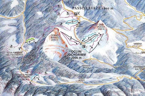 A small but high-altitude, settlement with a modest local ski area. The height makes it snowsure, especially having 50% snow-making cover back-up, but in any case the full valley's skiing is on the local Valle di Fiemme Pass.