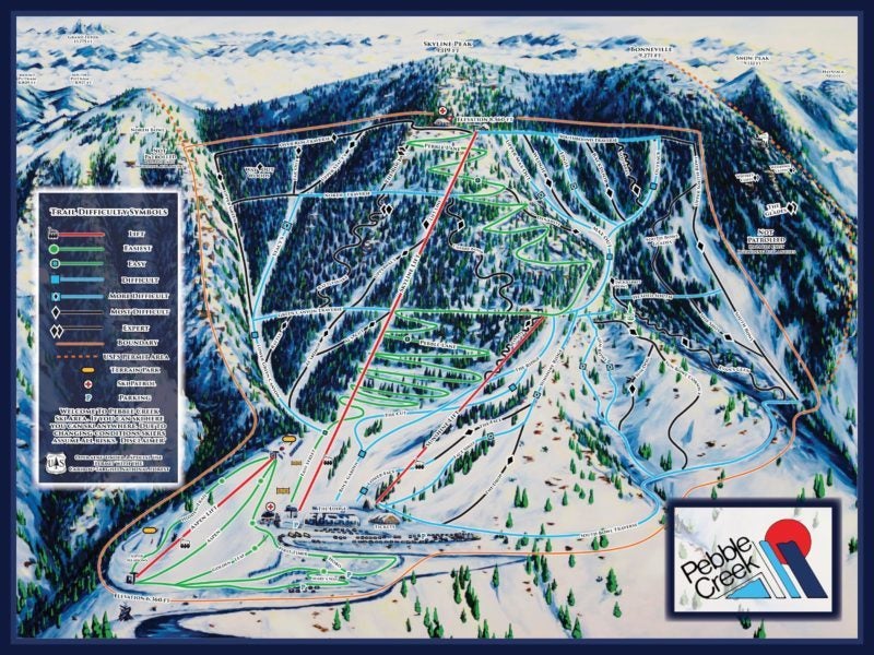 Pebble Creek Ski Area’s slopes sit nestled along the northwestern slopes of Mount Bonneville, the highest mountain of the Portneuf Range in Caribou National Forest. Just outside of Pocatello, Idaho, skiers and riders have access to 1,100 skiable acres with a 2,200 feet lift-serviced vertical. Three triple chairs service 54 named runs, with terrain ratings of 12% beginner, 35% intermediate, and 53% advanced. There is also a 1,098 meters USAA Giant Slalom run and 565 meter USAA Slalom run....more