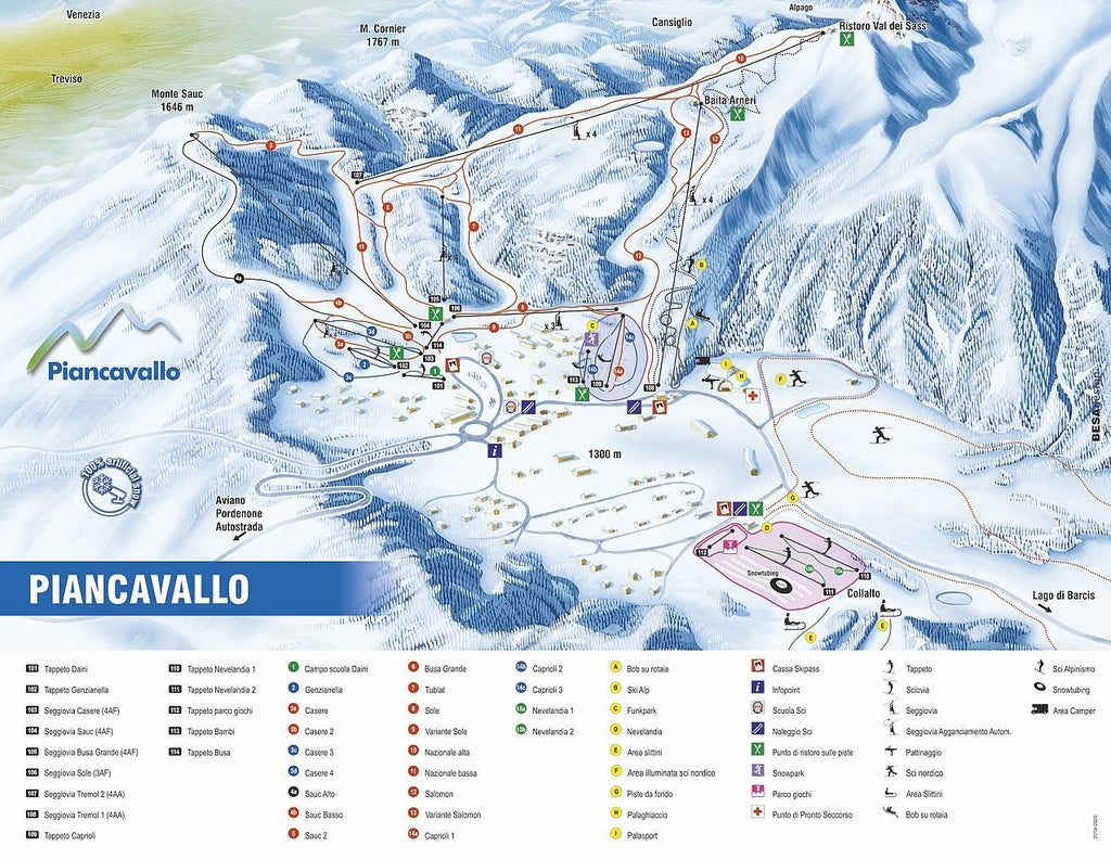 A 25 km of slopes give the magic opportunity to enjoy oneself along the slopes of both Tremol and Sauc mountains while 26 km are addressed to the cross-country skiers and 2 areas are set up one for the snowboarders and the other for children.