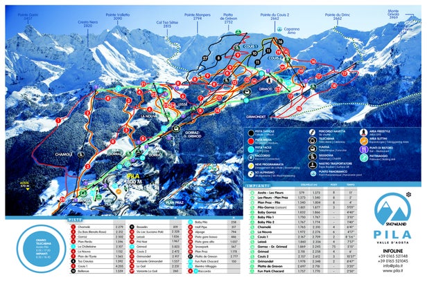Pila is a famous place in Val d'Aosta. It's very easy to get there with daily buses from the airports in Milano, Torino and Bergamo. There is also a gondola that starts from Aosta City, near the rail station. From the slopes you can see fantastic views like Monte Bianco, Cervino (Matterhorn), Ruitor and Grivola. The resort has a lot of snow, and there is also a powerful snowmaking system. In the last years this resort has built a lot of new lifts, and Pila is now the only ski resort in Aosta Val...more