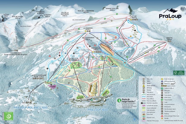 Pra Loup is one of the major ski areas in the Southern Alps with a friendly, laid back reputation and excellent lift systems. Lively, sunny, purpose built centre with two bases - the larger Pra Loup 1600 and the smaller Molanes at 1500m. Strong emphasis on family facilities and an excellent lift system linked to La Foux d'Allos in 'La Liberté de l'Espace'. The Pra Loup gondola is ideal for boarders and beginners as it goes straight up from the village at 1600 to sunny nursery slopes with nearby ...more
