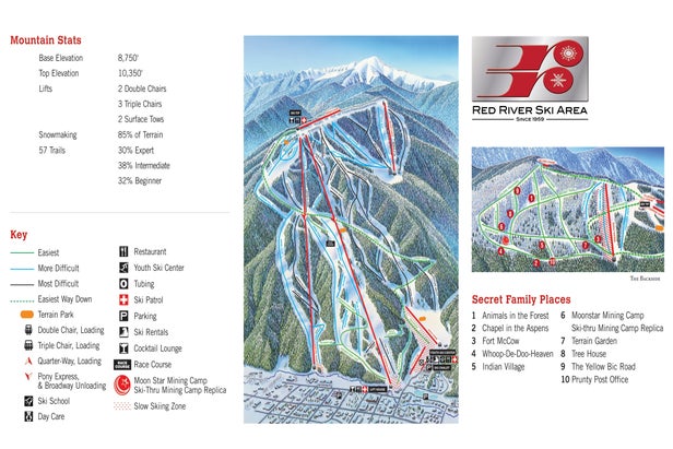 Red River Ski Area bills itself as "Ski Town of the Southwest." The whole town looks like a stage set from a favorite Western movie and - no surprise - is popular with vacationers from Texas and Oklahoma. The area has exceptionally easy access from town, with one chair rising a block off Main Street. Its terrain is mostly beginner and intermediate, but some people here avoid powder like the plague, so it can have some surprisingly good days for advanced skiers or boarders. Lots of excellent ski-...more
