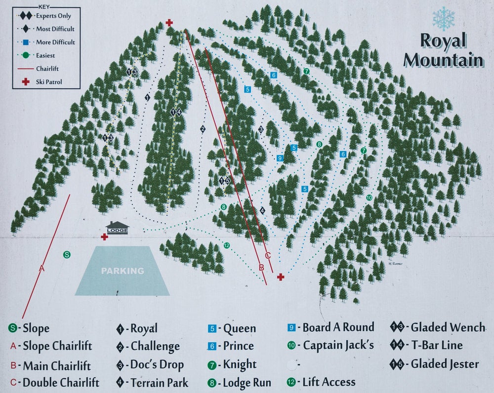 Royal Mountain Ski Area, located in Caroga Lake, NY, is a small ski area with 13 ski trails served by 3 lifts. The Ski Area is an easy hour and a half drive from Albany, and 4 hours from New York City. The Ski Area offers 30 acres of skiable terrain, a 550 foot vertical drop, 100% snowmaking as well as adult and children's lesson programs....more