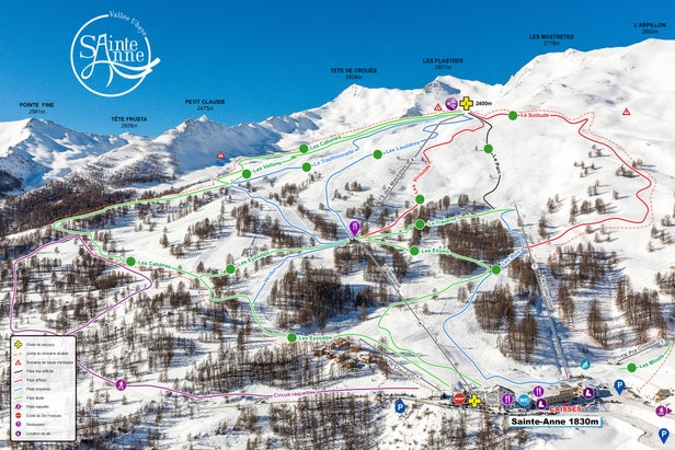 An altitude resort near the Italian border and sharing a lift ticket with Pra Loup and Le sauze Super Sauze (although not lift linked to them). The resort has both a good snow and sunshine record and great views across the Southern Alps....more