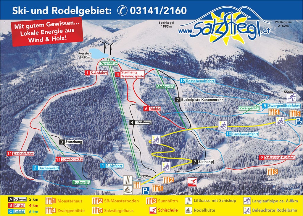 From the mountain station of the ski resort Salzstiegl at a highness of 1710 metres above sea level, there´s an amazing panorama view on the Seckauer Alps, the Niederen Tauern and the Hirschegger Alp. Whoever is on skiing vacation in Salzstiegl, expect very well prepared tracks in every difficulty and for every skill. And all only 60km away from Graz.
