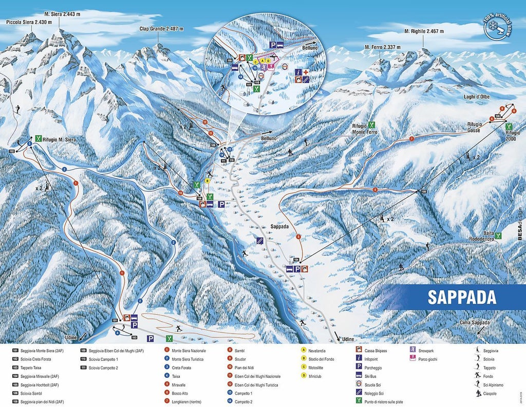 Sappada Dolomites of Veneto, near the border on Austria, Veneto and Friuli has winter facilities which have elevated Sappada to a primary role in the national tourist field. Over 25km of downhill ski slopes snowmaking if necessary, 4 (2-seat) chairlifts, 1 ( 1 place) chairlift and 11 ski lifts, 20km of cross-country skiing tracks, and a snow park for snowboard lovers. But Sappada is not only ski: The big innovation of the 2003/2004 winter season was Nevelandia, the first big Amusement Park on sn...more