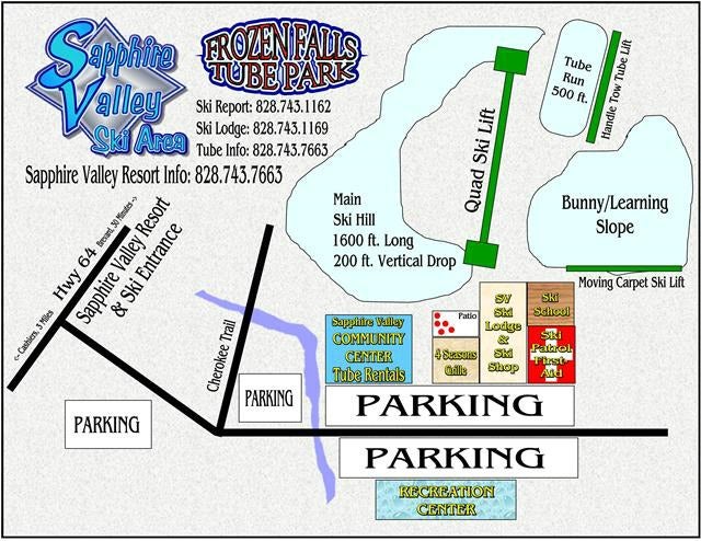 Sapphire Valley ski hill consists of three downhill runs, one each for advanced, intermediate, and beginner skiers, featuring runs up to 1600 feet in length and a vertical drop of 200 feet...more