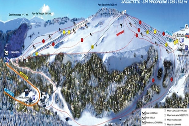 Reached by cable car from the beautiful and historic town of Sarnano, which also boasts a wealth of indoor and outdoor sporting and cultural facilities, the skiing beneath Pizzo Sassoletto suits skiers of all standards and is on almost exclusively on wide, open sunny slopes....more
