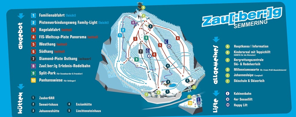 As a Zau [:ber:] g the Semmering-Hirschenkogel has done to itself a new name. With our optimum runway offer, for beginners and world cup runners, to the new Funpark for ski drivers and Snowboarder, the new Quarterpipe, the Zau [:ber:] g experience toboggan run, as well as the ultimative night runway (!!! 3 mega night runways!!!) and night sledge offer, the strongest floodlight runway lighting of Europe and the NEW ZauberBAR Mega Action and Après ski Total. We offer a contemporary, attractive and...more