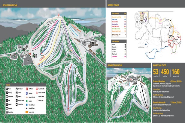 Shanty Creek offers 47 trails over two distinctive ski areas. All the tough stuff is on Schuss Mountain. There are Slopeside condos and a popular tube park. Looking for a Midwest thrill ride? Make a run down Kingdom Come with its 450-foot vertical drop.