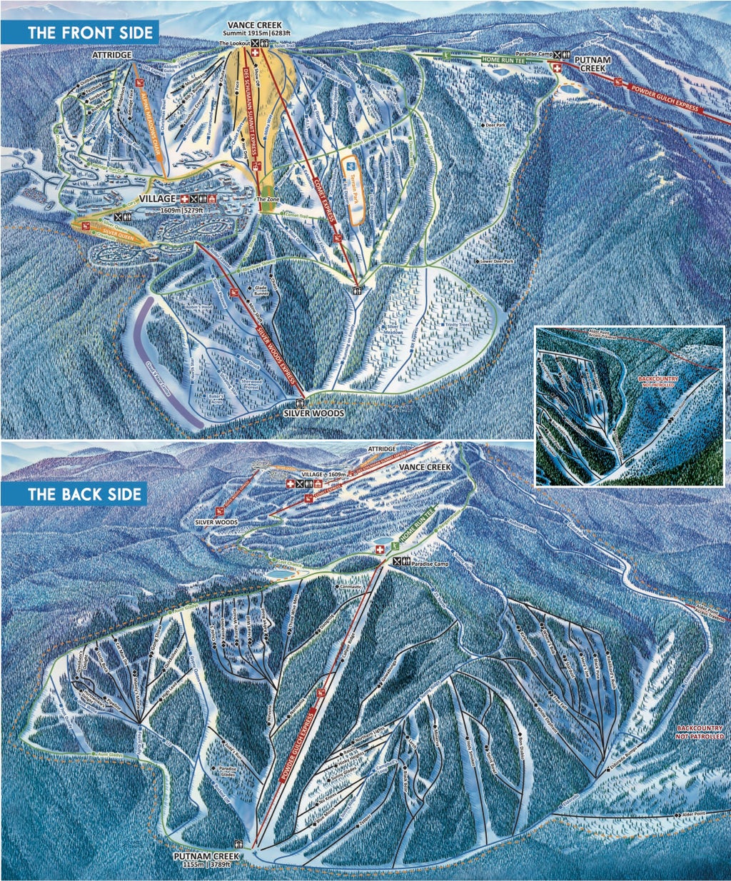 You'll find what you are looking for, regardless of your ability. Do your skiing or riding thing across 3,000 acres from groomed cruisers to the Putnam Creek steeps and into the Silver Woods glades.