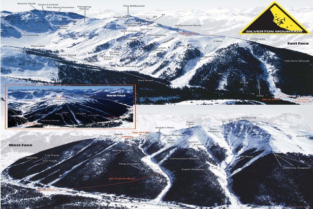 Located in Silverton, Colorado, and opened in 2002, Silverton Mountain is an advanced and expert skier and rider only mountain. One double chairlift accesses 1,819 acres of the steepest and deepest un-groomed powder. An additional 22,000 acres are accessible by hiking and helicopter. All lift tickets during the winter include a guide. In the spring, unguided skiing is allowed.