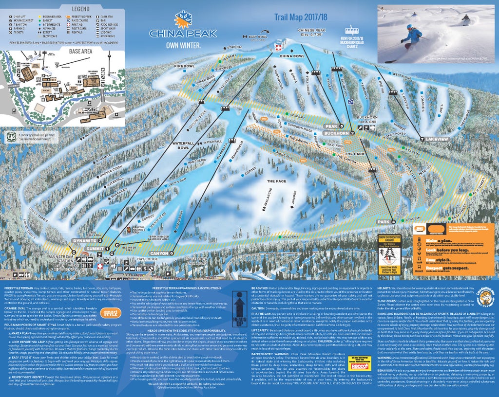 China Peak Mountain Resort is located at Huntington Lake, just 65 miles northeast of Fresno, California, and the Fresno Yosemite International Airport. Skiers and riders will find 1,679 feet of vertical, and a summit elevation of 8,700 feet.